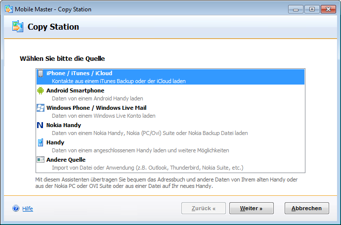 Features » Copy Station » Screenshots » 1. Quelle wählen